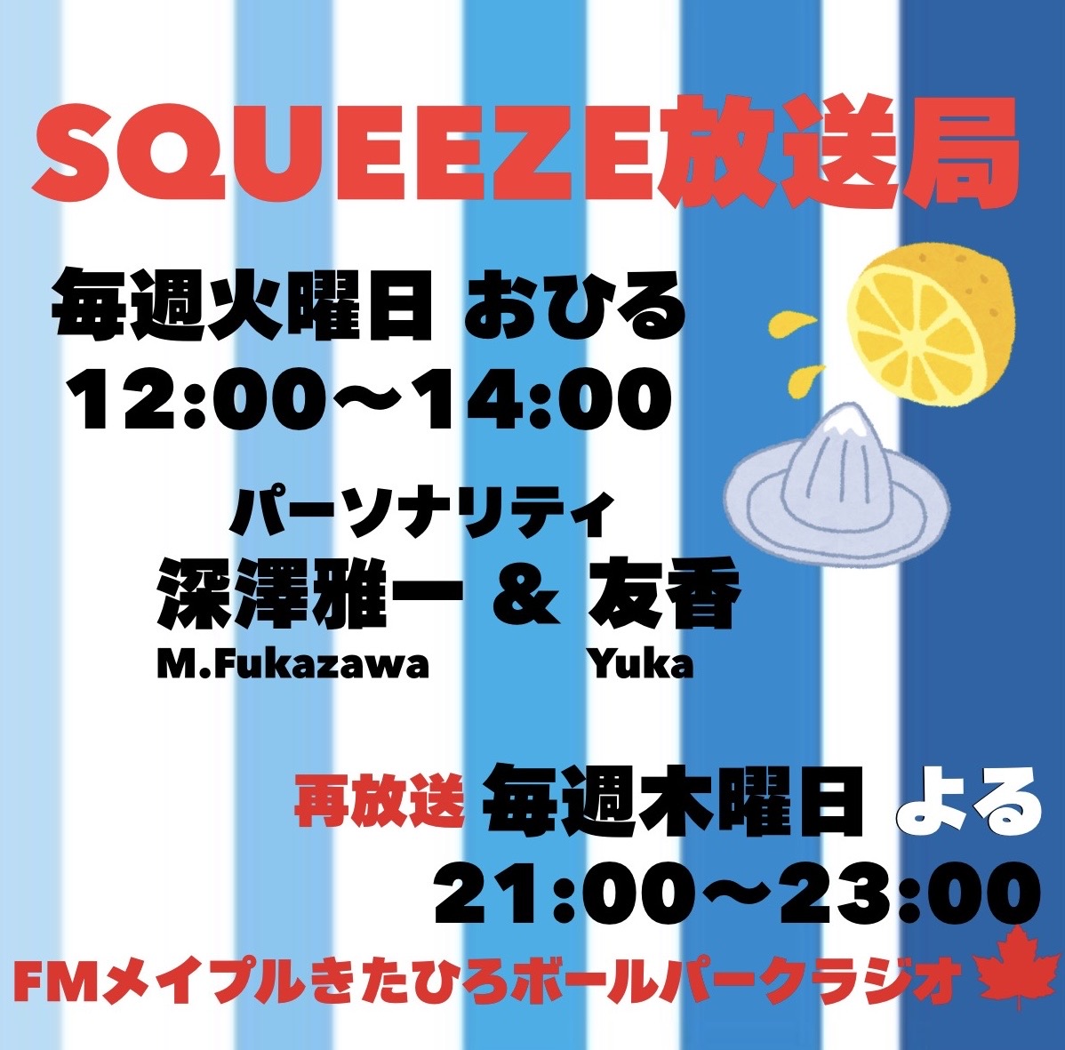 新局長に深澤雅一を迎え、新たにパーソナリティ友香(ゆか)さんを迎え、時間も2時間に拡大して、装いも新たに新スタートします!